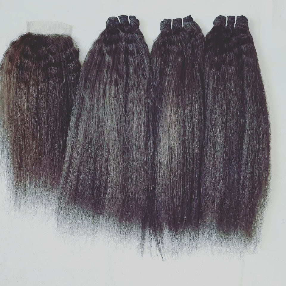 Our Kinky Straight is perfect if you want a little versatility with texture, this is for you!! Perfect blend for those with 4B-4C hair with a blow out effect! This hair is soft, manageable, and comes with